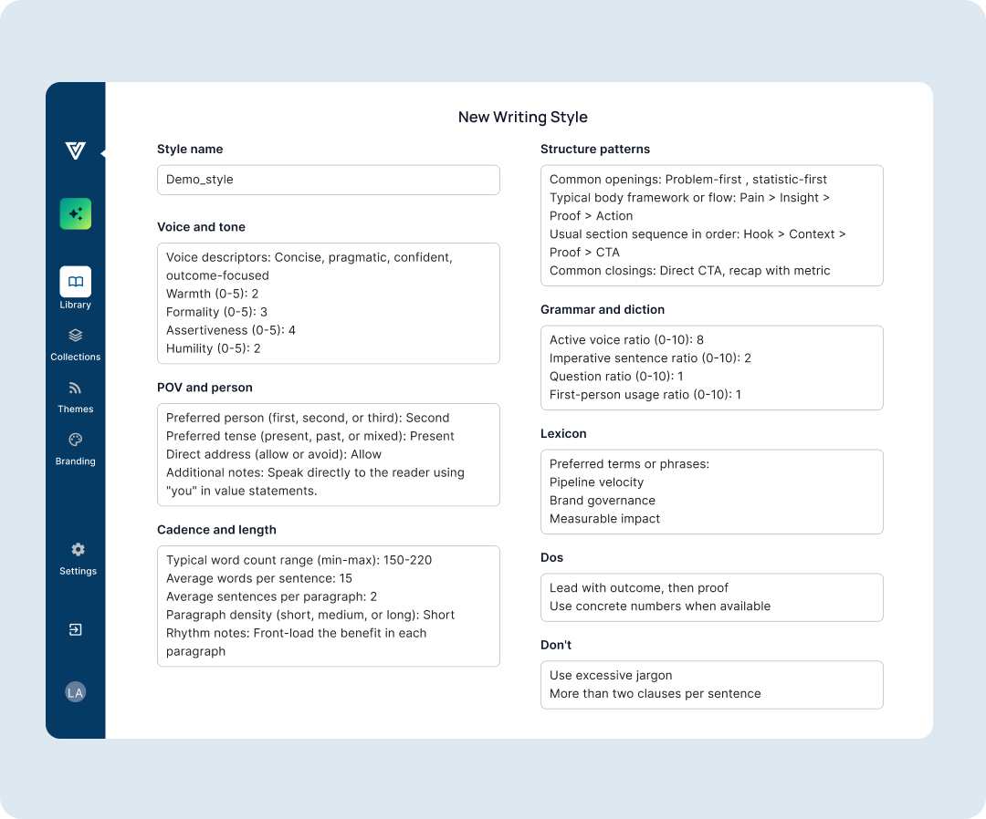 Lock in tone, vocabulary, and voice across teams