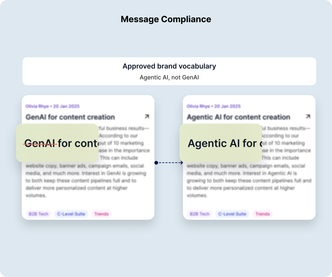 Inconsistent messaging erodes trust. Keep every asset aligned with your brand voice & campaign messaging.